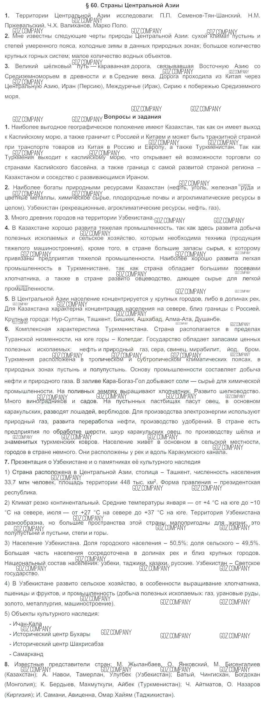 Здесь готовые ответы по Географии за 7 (седьмой) класс от Коринская, Душина, Щенев Учебник (издательство: Дрофа от 2017 г.) № 60