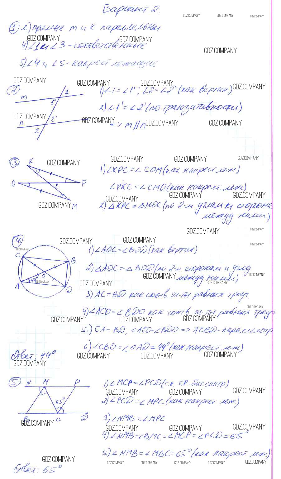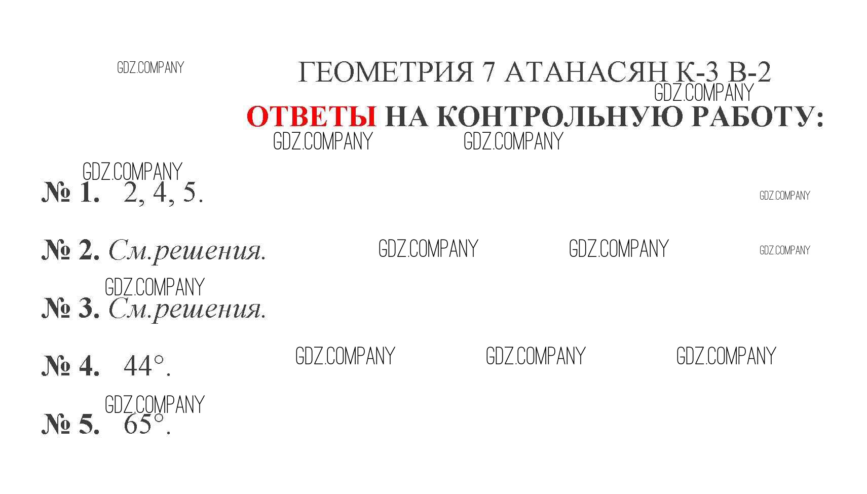Здесь готовые ответы по Геометрии за 7 (седьмой) класс от Мельникова Контрольные работы УМК (издательство: Экзамен от 2016 г.) № 2