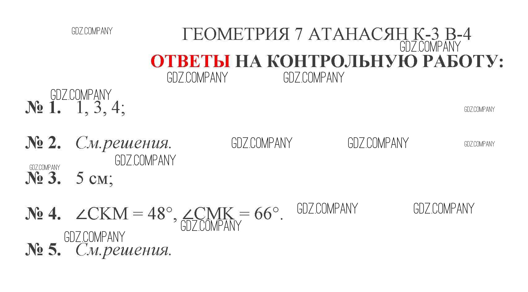 Здесь готовые ответы по Геометрии за 7 (седьмой) класс от Мельникова Контрольные работы УМК (издательство: Экзамен от 2016 г.) № 4