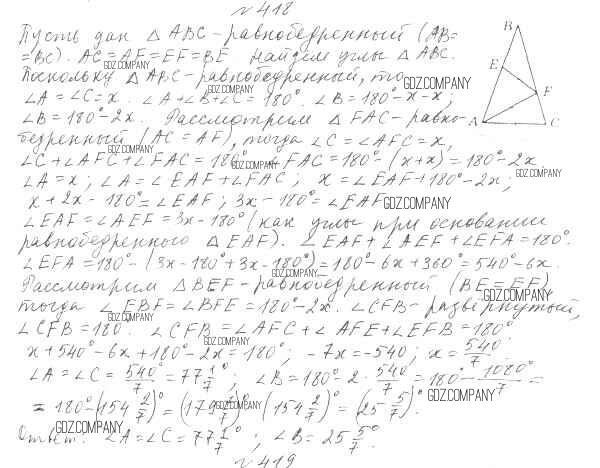 Здесь готовые ответы по Геометрии за 7 (седьмой) класс от Мерзляк, Полонский, Якир Учебник Алгоритм успеха (издательство: Вентана-граф от 2017 г.) № 418