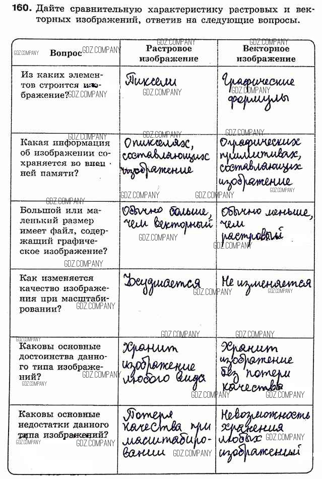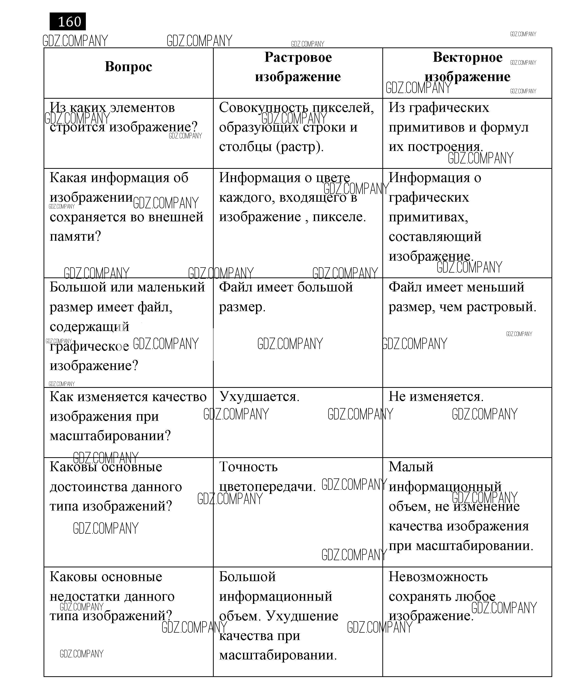 Здесь готовые ответы по Информатике за 7 (седьмой) класс от Босова Рабочая тетрадь (издательство: Бином от 2018 г.) № 160