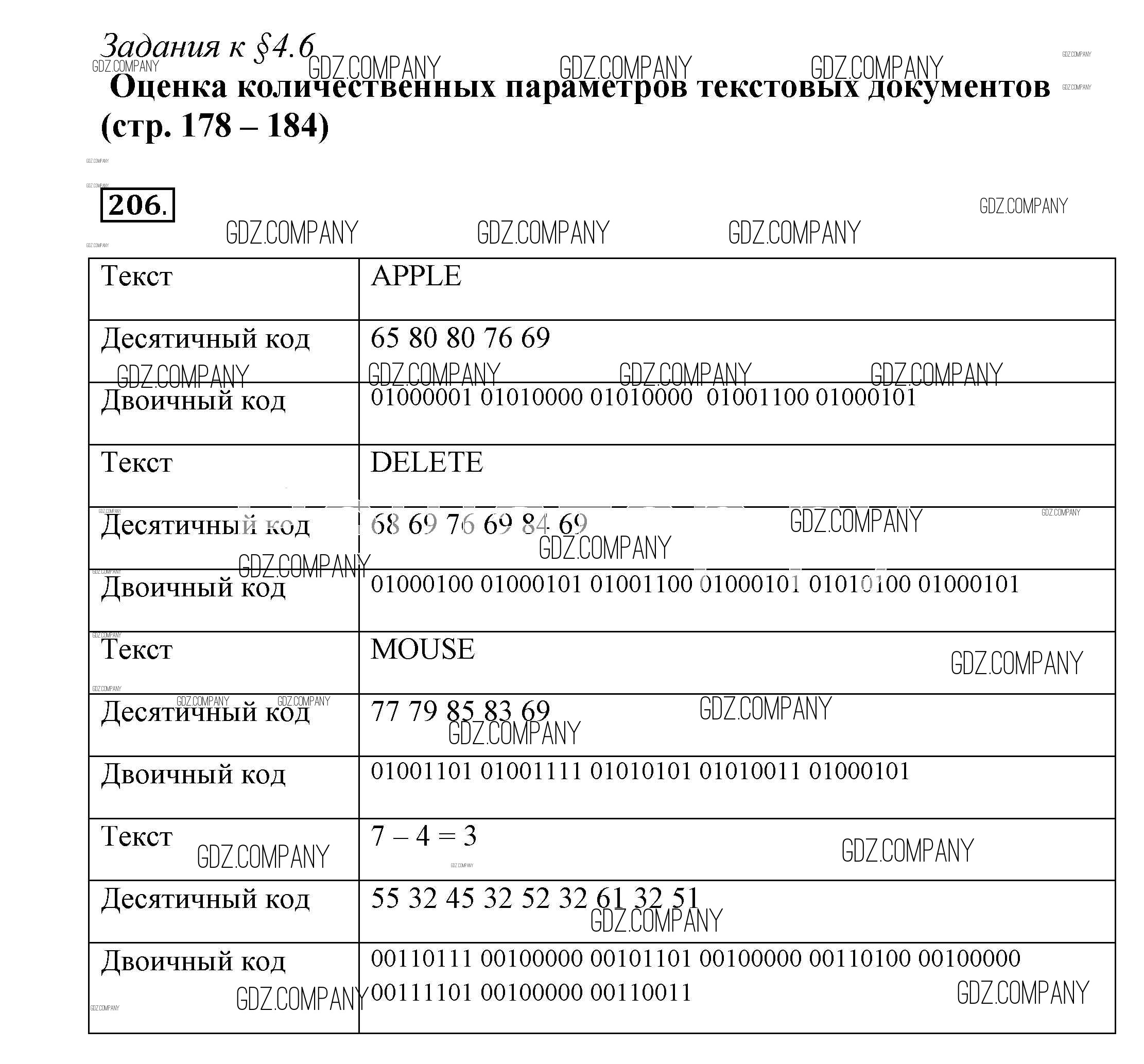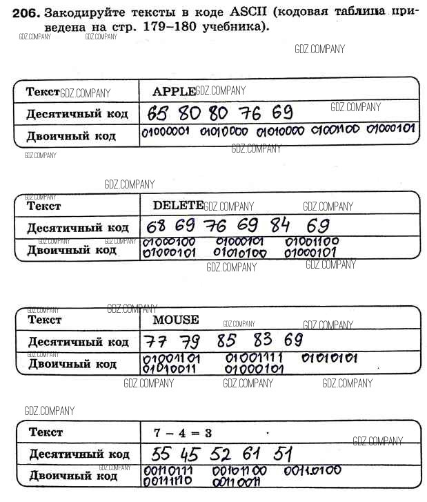 Здесь готовые ответы по Информатике за 7 (седьмой) класс от Босова Рабочая тетрадь (издательство: Бином от 2018 г.) № 206