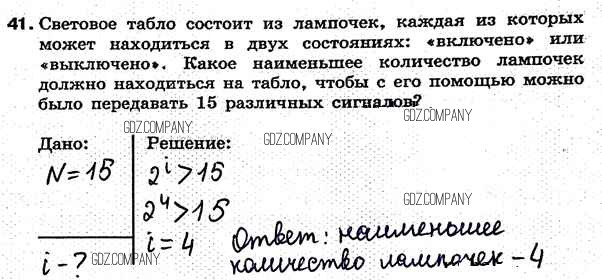 Здесь готовые ответы по Информатике за 7 (седьмой) класс от Босова Рабочая тетрадь (издательство: Бином от 2018 г.) № 41