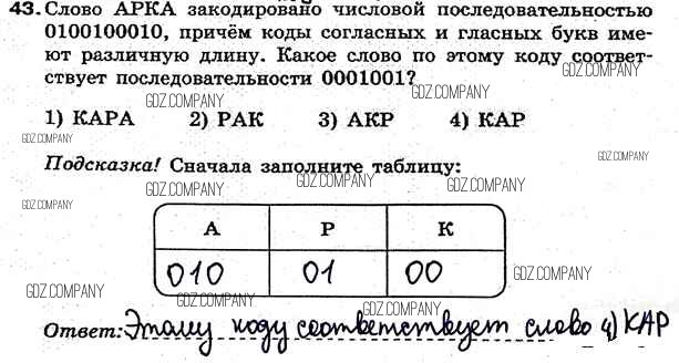 Здесь готовые ответы по Информатике за 7 (седьмой) класс от Босова Рабочая тетрадь (издательство: Бином от 2018 г.) № 43