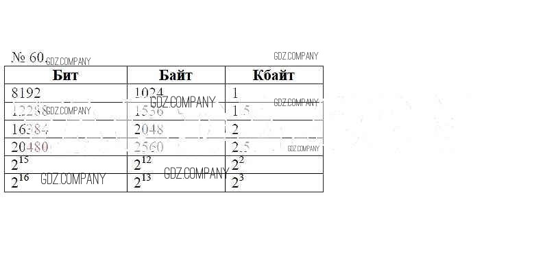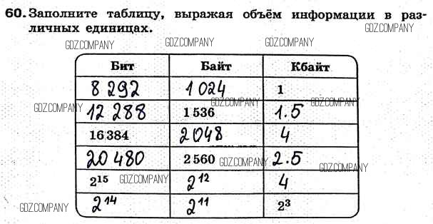 Здесь готовые ответы по Информатике за 7 (седьмой) класс от Босова Рабочая тетрадь (издательство: Бином от 2018 г.) № 60