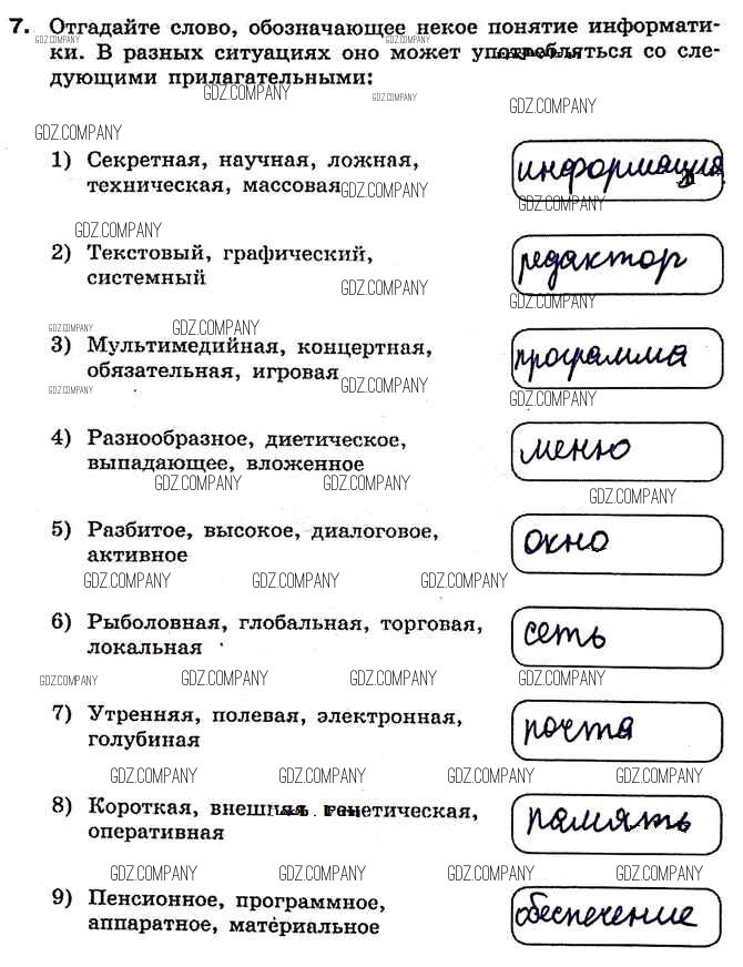 Здесь готовые ответы по Информатике за 7 (седьмой) класс от Босова Рабочая тетрадь (издательство: Бином от 2018 г.) № 7
