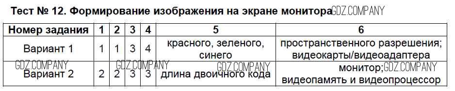 Здесь готовые ответы по Информатике за 7 (седьмой) класс от Масленикова Контрольно-измерительные материалы (КИМ) (издательство: ВАКО от 2017 г.) № Тест №12. Формирование изображения на экране монитора