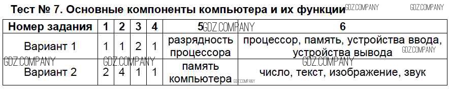 тест / тест №7. Основные компоненты компьютера и их функции