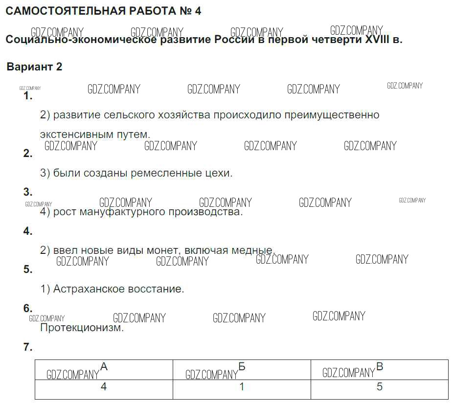 Россия в первой четверти XVIII века / ср-5 / вариант 2