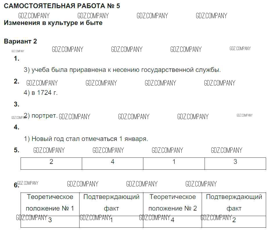 Россия в первой четверти XVIII века / кр / вариант 2