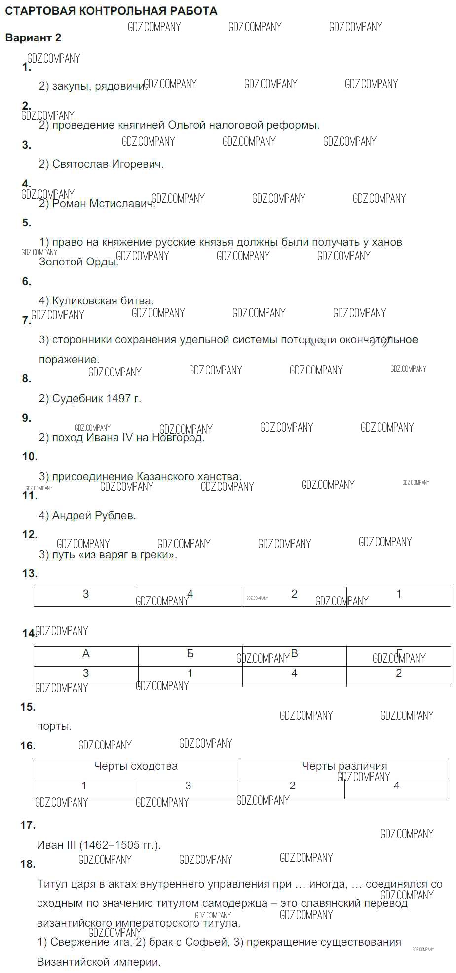 Здесь готовые ответы по Истории за 7 (седьмой) класс от Акиньшина, Артасов Рабочая тетрадь (издательство: Национальное образование от 2013 г.) № Вариант 2