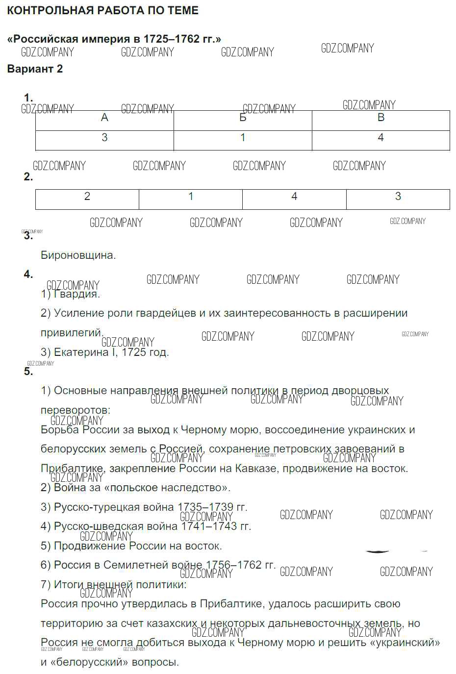 Российская империя в 1725-1762 гг / КР / вариант 2