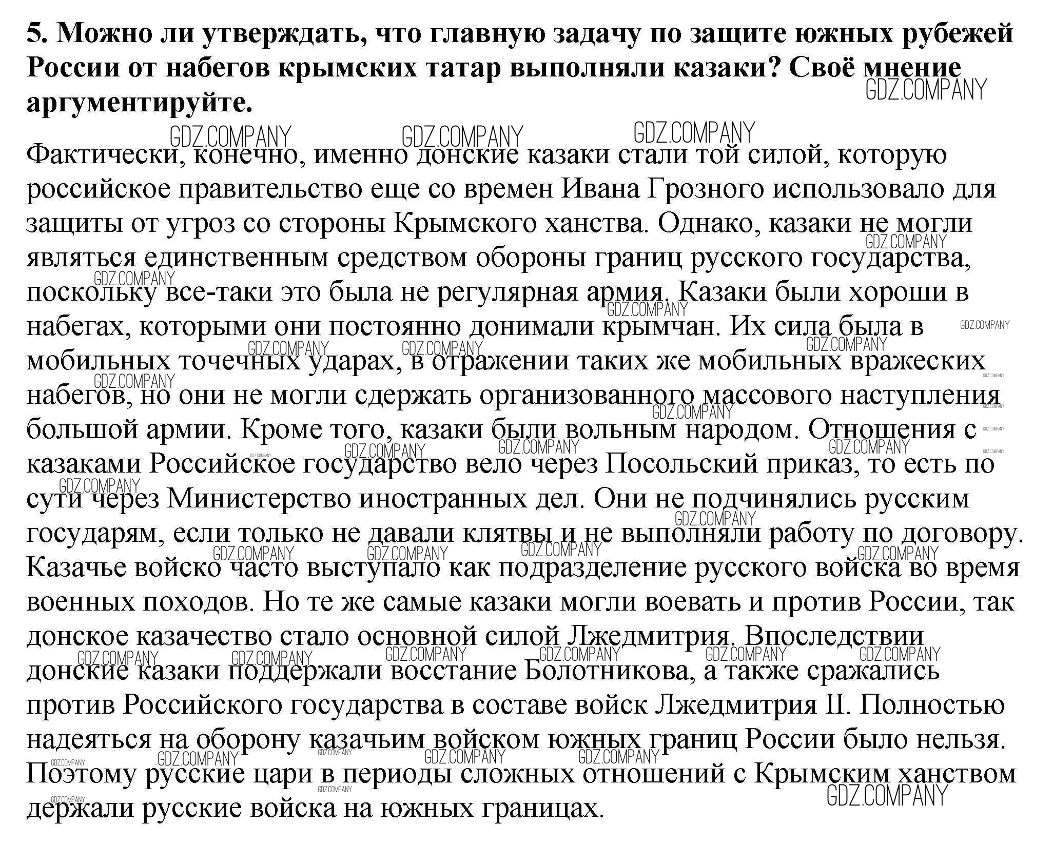 Здесь готовые ответы по Истории за 7 (седьмой) класс от Арсентьев, Данилов, Курукин Учебник (издательство: Просвещение от 2016 г.) № 5