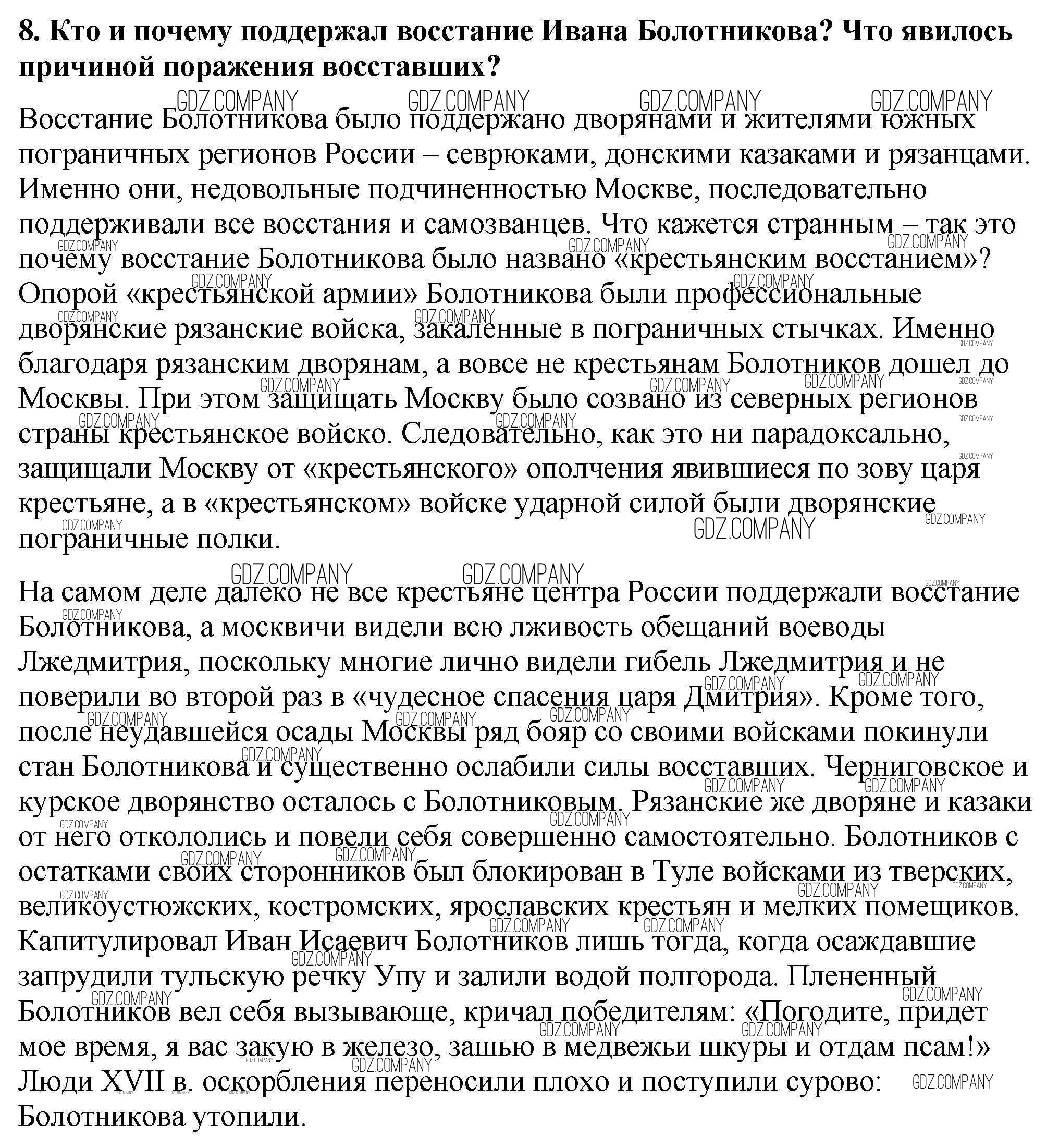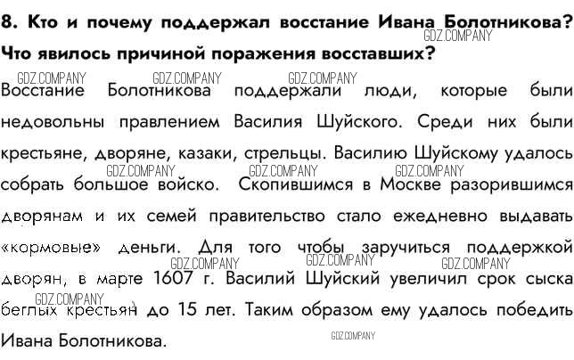 Здесь готовые ответы по Истории за 7 (седьмой) класс от Арсентьев, Данилов, Курукин Учебник (издательство: Просвещение от 2016 г.) № 8