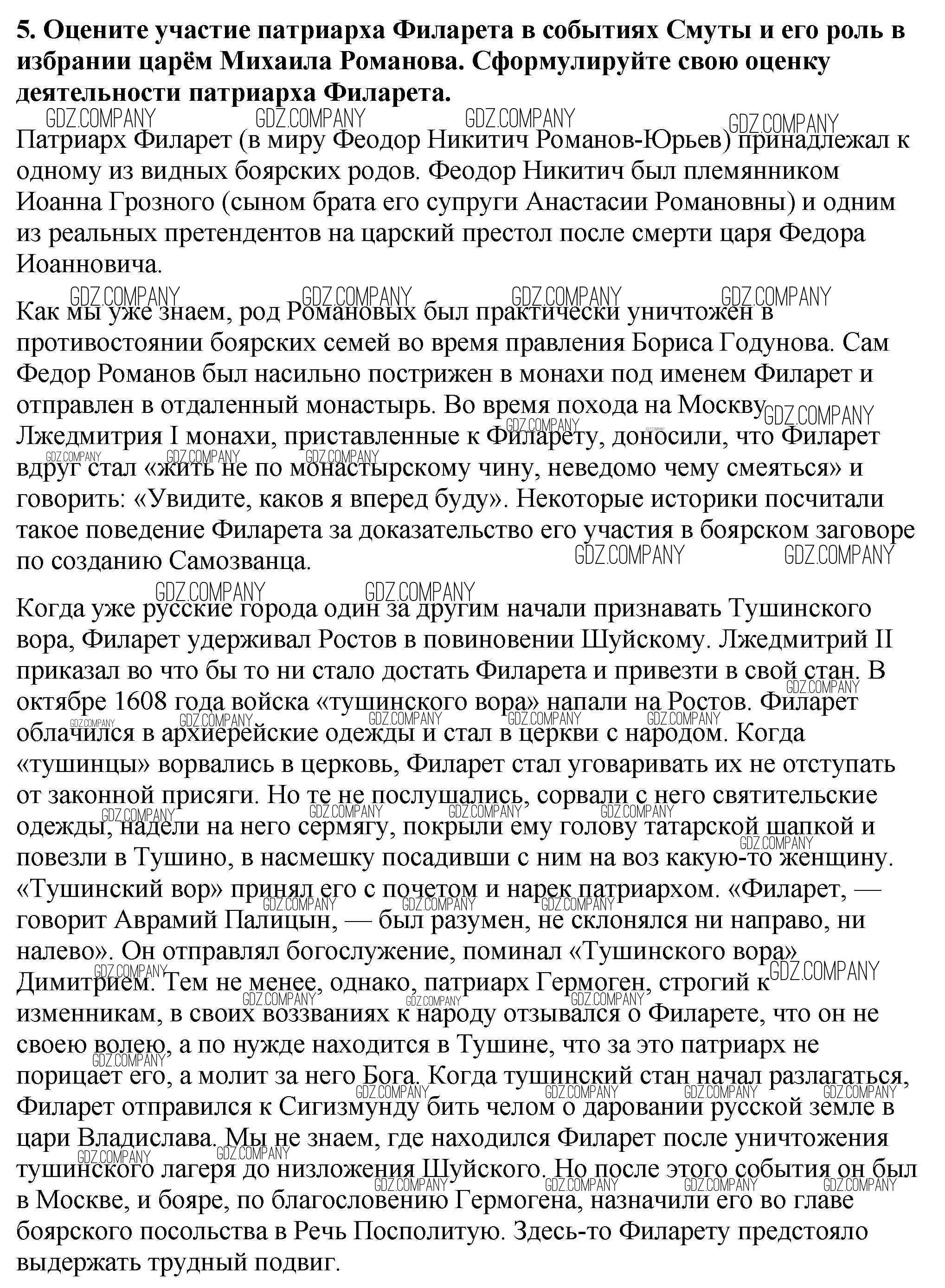 Здесь готовые ответы по Истории за 7 (седьмой) класс от Арсентьев, Данилов, Курукин Учебник (издательство: Просвещение от 2016 г.) № 5