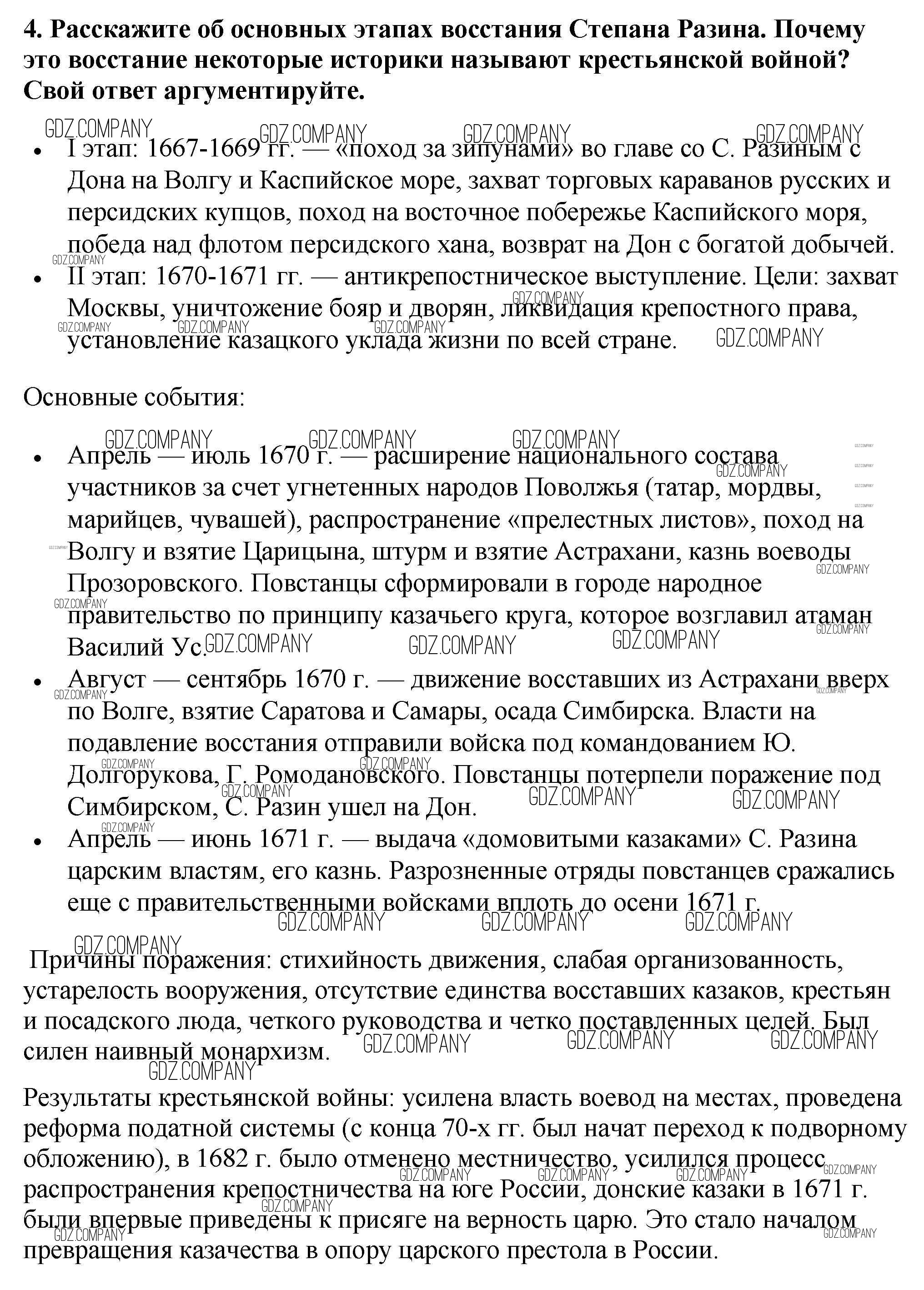 Здесь готовые ответы по Истории за 7 (седьмой) класс от Арсентьев, Данилов, Курукин Учебник (издательство: Просвещение от 2016 г.) № 4
