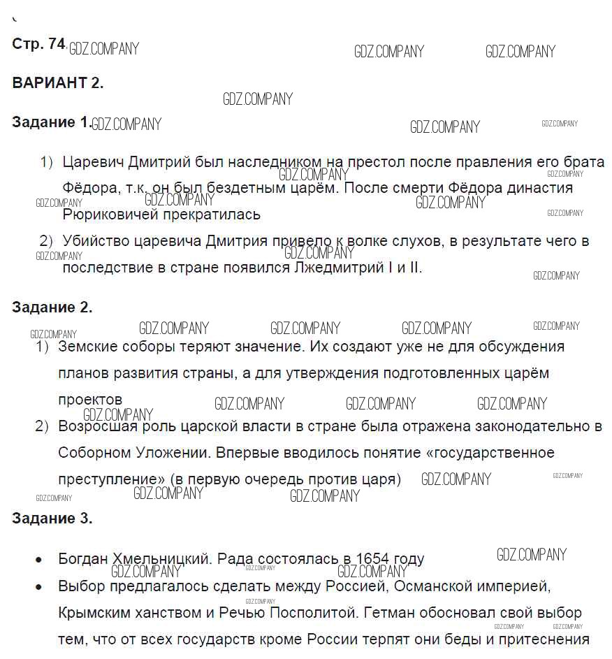 Здесь готовые ответы по Истории за 7 (седьмой) класс от Артасов Контрольные работы УМК (издательство: Просвещение от 2016 г.) № 74