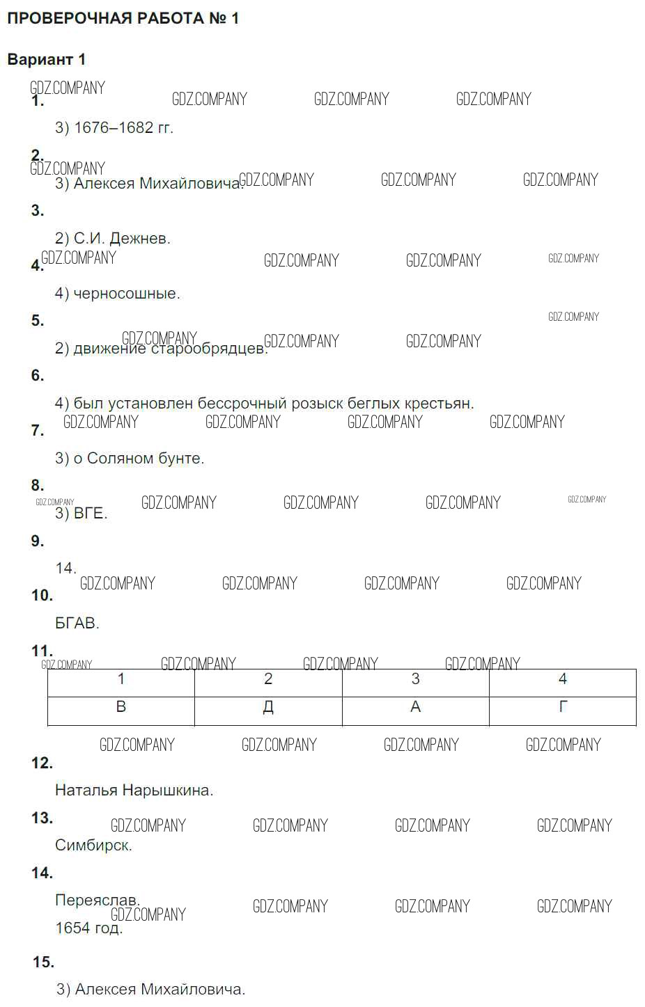 Россия в XVII в. / проверочная работа 1 / вариант 1