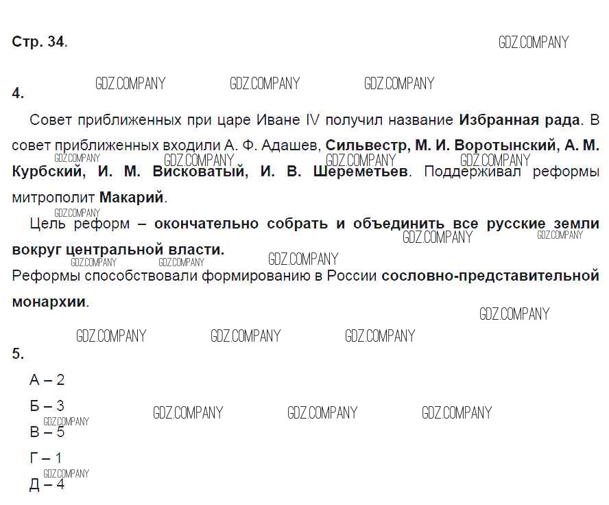 Здесь готовые ответы по Истории за 7 (седьмой) класс от Чернова Рабочая тетрадь УМК (издательство: Экзамен от 2017 г.) № 34