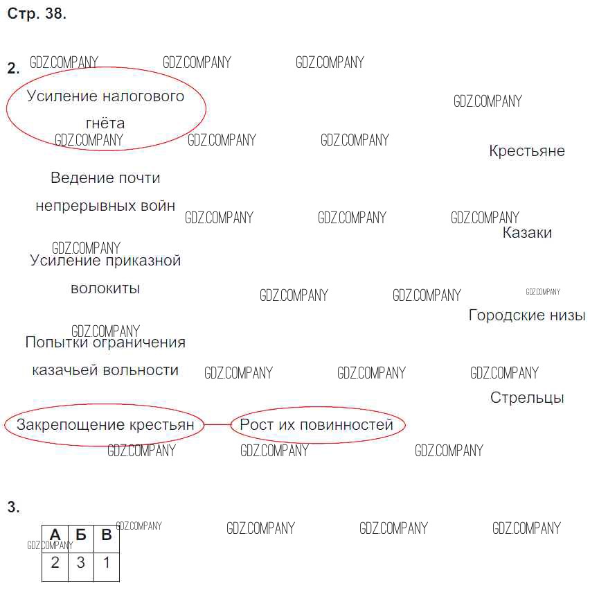 Здесь готовые ответы по Истории за 7 (седьмой) класс от Чернова Рабочая тетрадь УМК (издательство: Экзамен от 2017 г.) № 38
