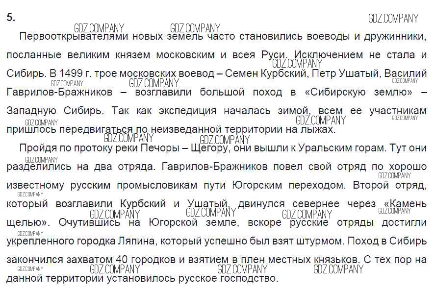 Здесь готовые ответы по Истории за 7 (седьмой) класс от Данилов, Косулина, Лукутин, Соколова Рабочая тетрадь УМК (издательство: Просвещение от 2016 г.) № 5