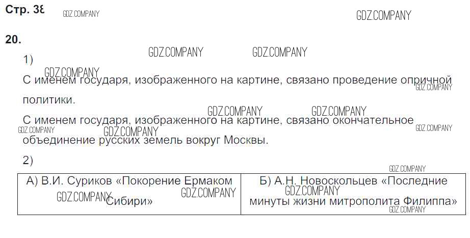 Здесь готовые ответы по Истории за 7 (седьмой) класс от Гевуркова Рабочая тетрадь УМК (издательство: Экзамен от 2018 г.) № 38