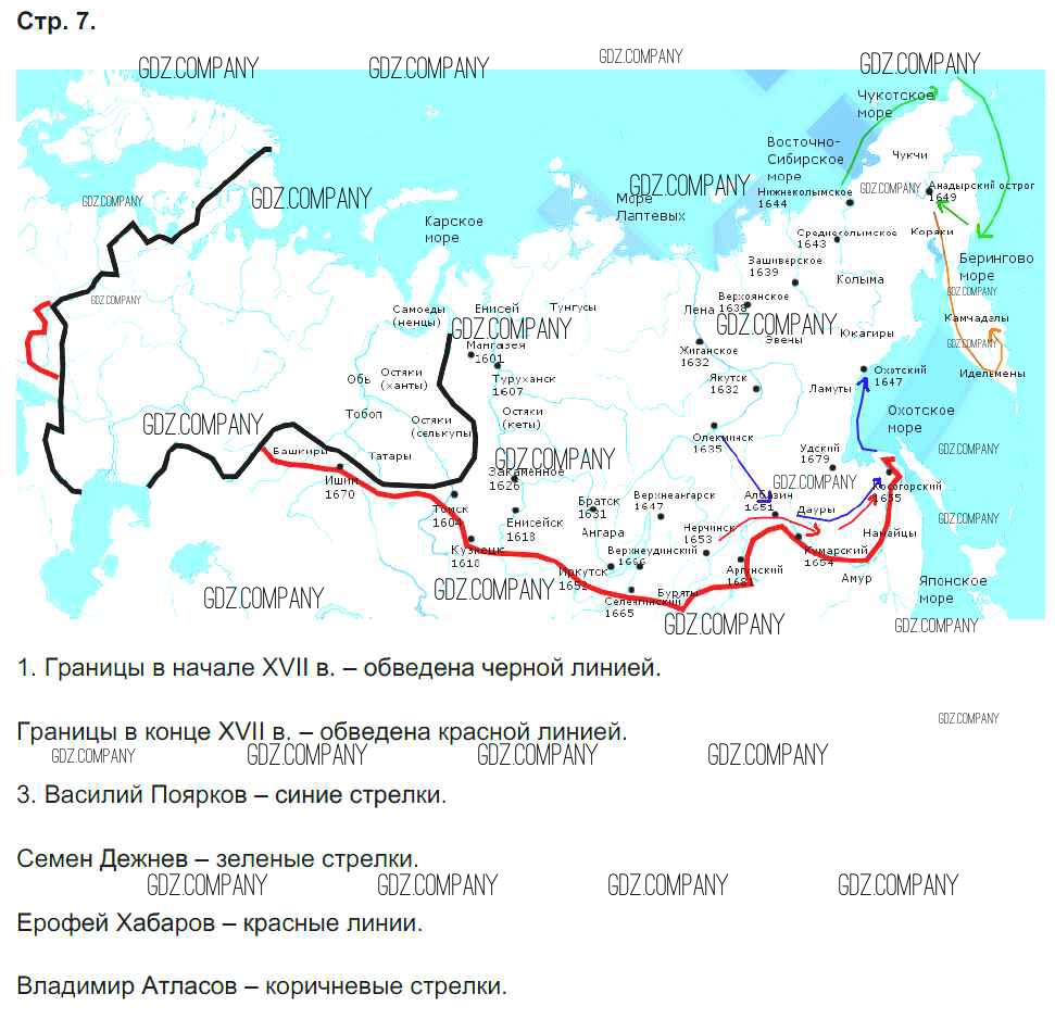 Здесь готовые ответы по Истории за 7 (седьмой) класс от Павлова Контурные карты (издательство: Экзамен от 2014 г.) № 7