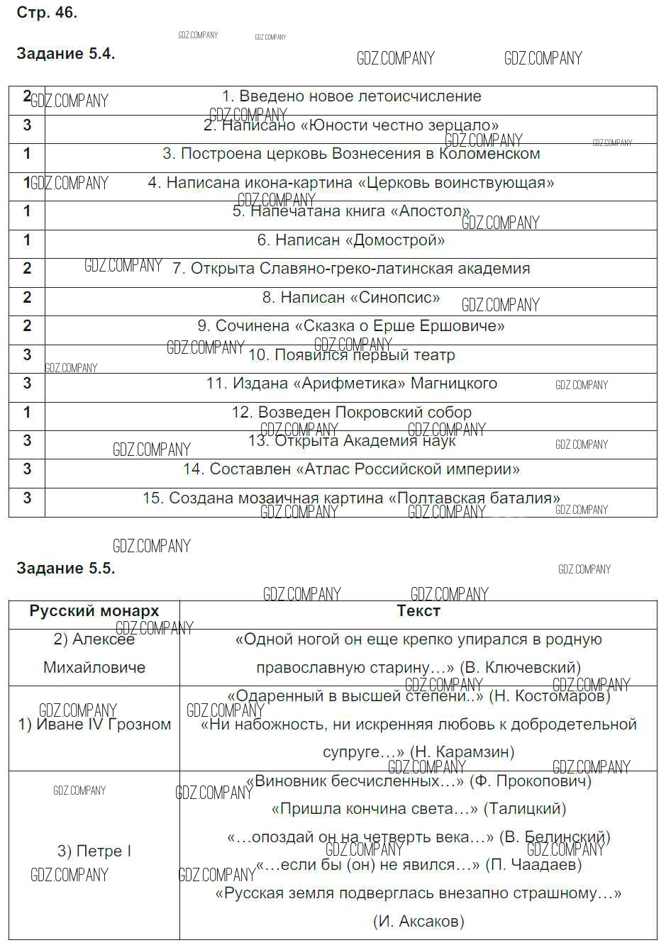 Здесь готовые ответы по Истории за 7 (седьмой) класс от Симонова Рабочая тетрадь УМК (издательство: Экзамен от 2015 г.) № 46