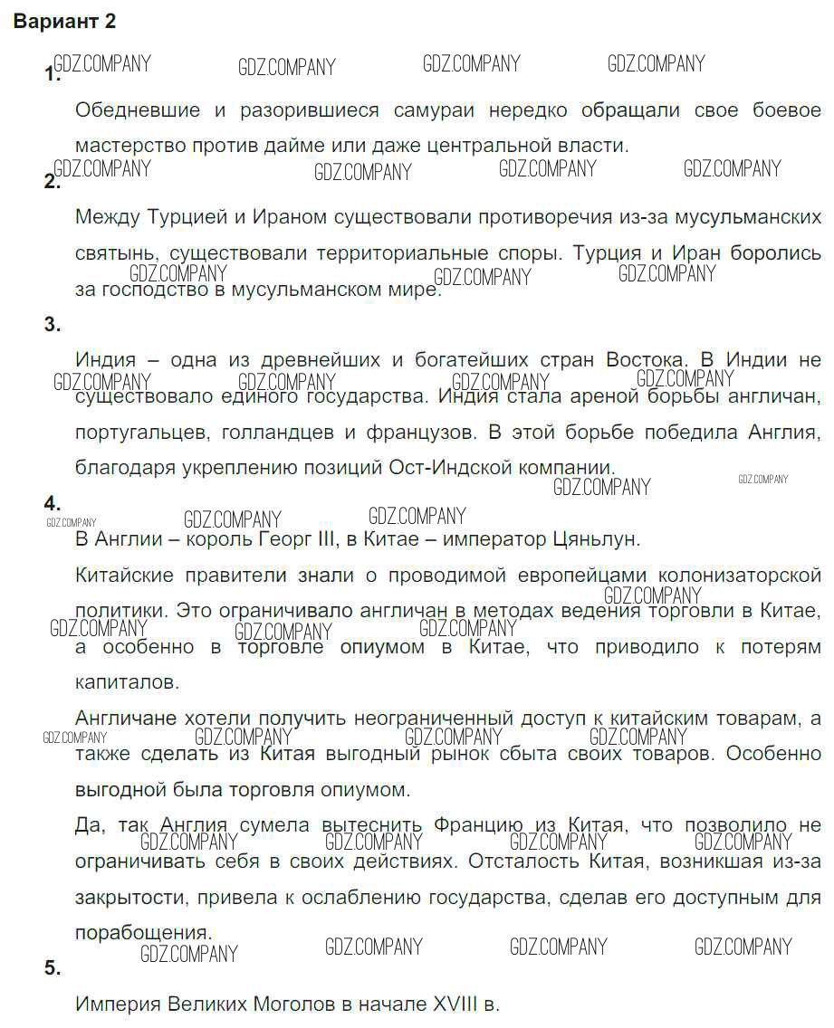 страны Востока в XVI-XVIII в веках / проверочная работа 2 / вариант 2