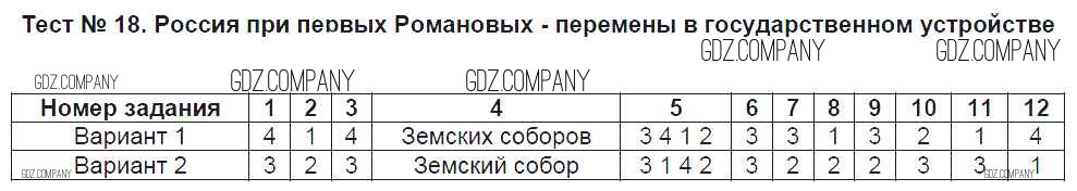 Здесь готовые ответы по Истории за 7 (седьмой) класс от Воробьёва Тесты УМК (издательство: Экзамен от 2017 г.) № 18