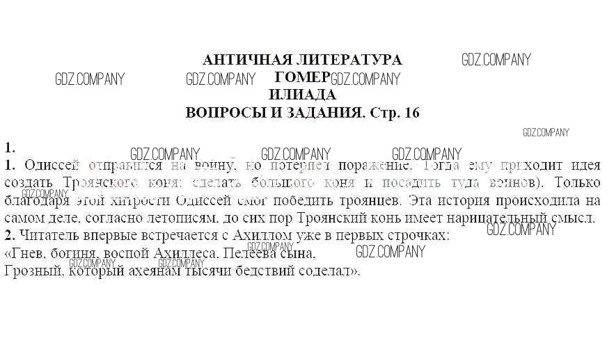 часть 1 / Античная литература. Гомер. Илиада / Вопросы и задания / 1
