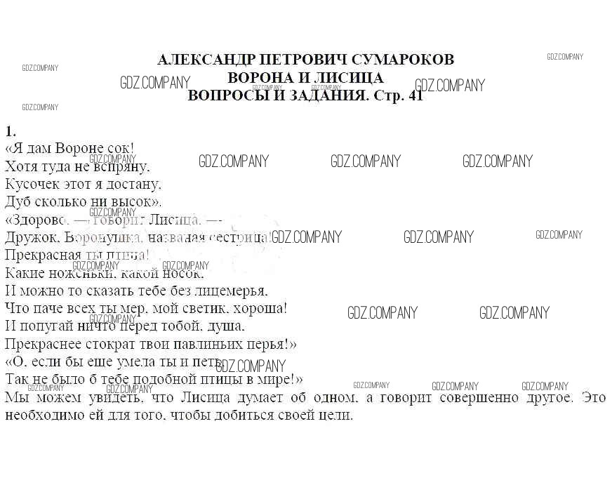 часть 1 / Александр Петрович Сумароков. Ворона и лисица / Вопросы и задания / 1