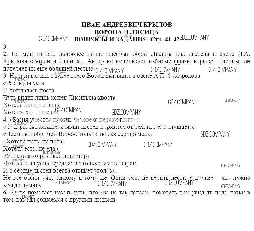 часть 1 / Иван Андреевич Крылов. Ворона и лисица / Вопросы и задания / 3