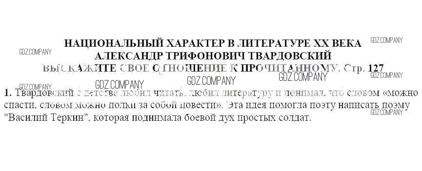 часть 2 / Национальный характер в литературе XX века. Александр Трифонович Твардовский / Выскажите свое отношение к прочитанному / 1