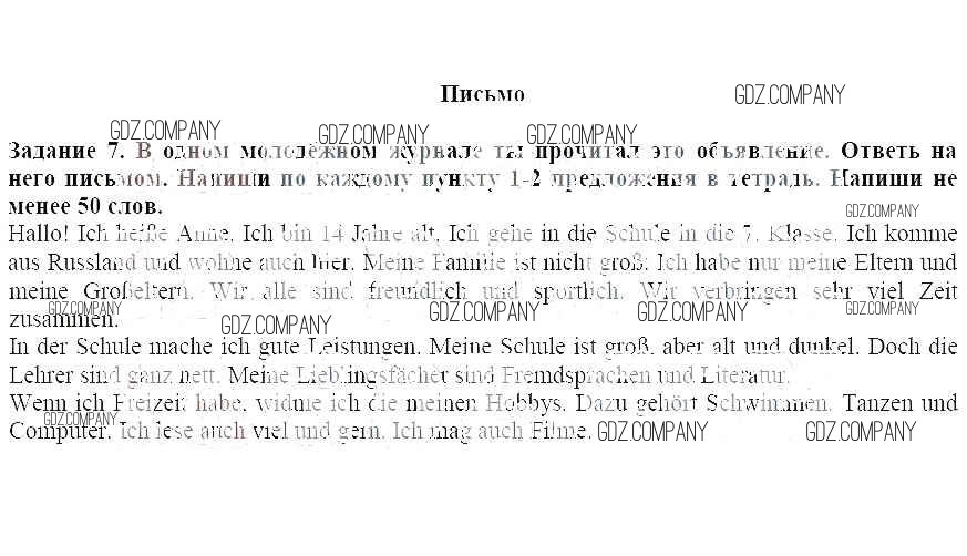 Здесь готовые ответы по Немецкому языку за 7 (седьмой) класс от Аверин, Джин, Рорман, Збранкова Рабочая тетрадь Horizonte (издательство: Просвещение от 2013 г.) № 7