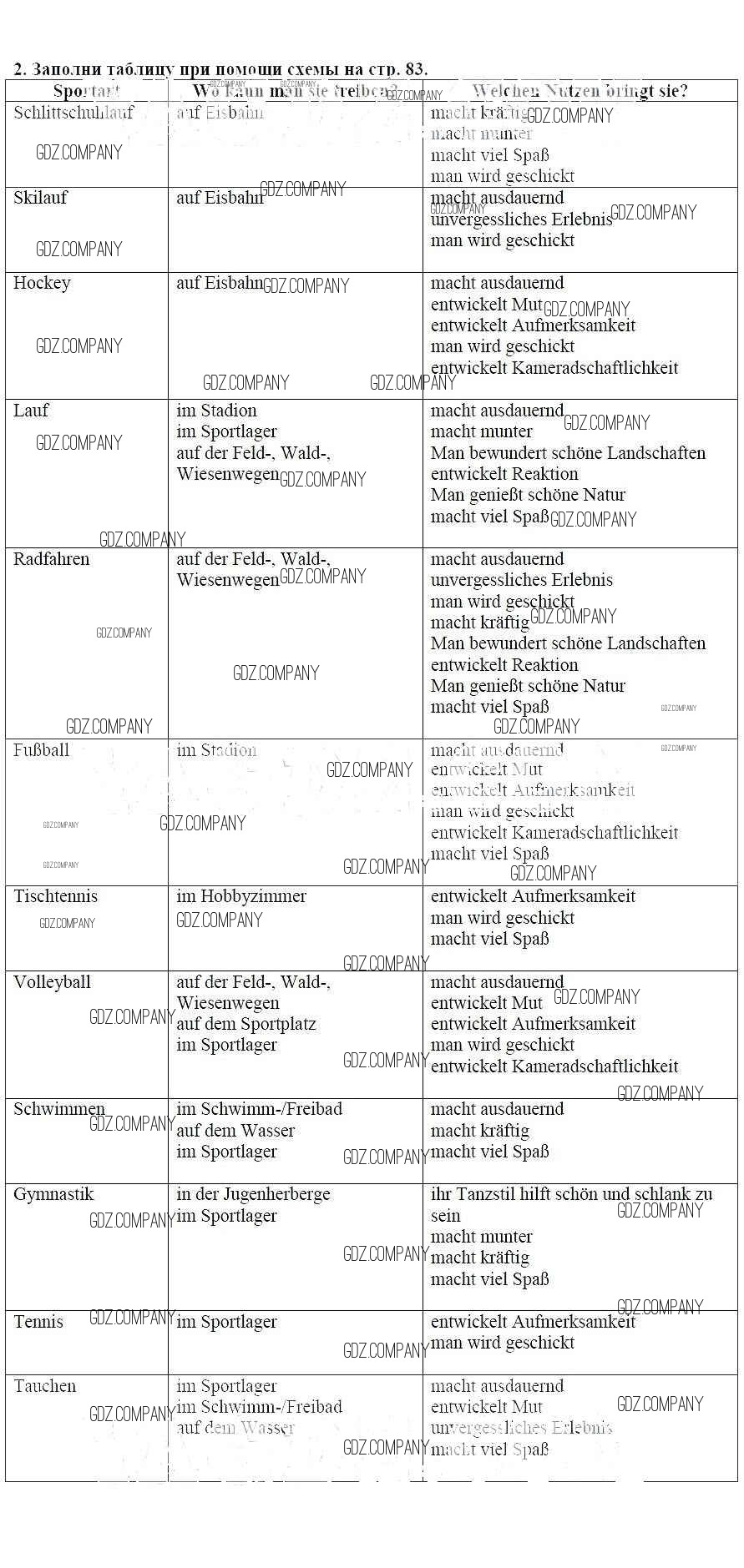 Здесь готовые ответы по Немецкому языку за 7 (седьмой) класс от Бим, Садомова, Фомичева, Крылова Рабочая тетрадь (издательство: Просвещение от 2012 г.) № 2