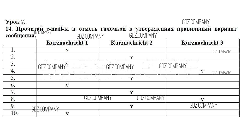 Здесь готовые ответы по Немецкому языку за 7 (седьмой) класс от Радченко, Глушак Рабочая тетрадь Wunderkinder (издательство: Просвещение от 2012 г.) № 14