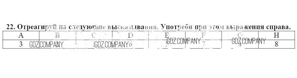 Здесь готовые ответы по Немецкому языку за 7 (седьмой) класс от Радченко, Глушак Рабочая тетрадь Wunderkinder (издательство: Просвещение от 2012 г.) № 22