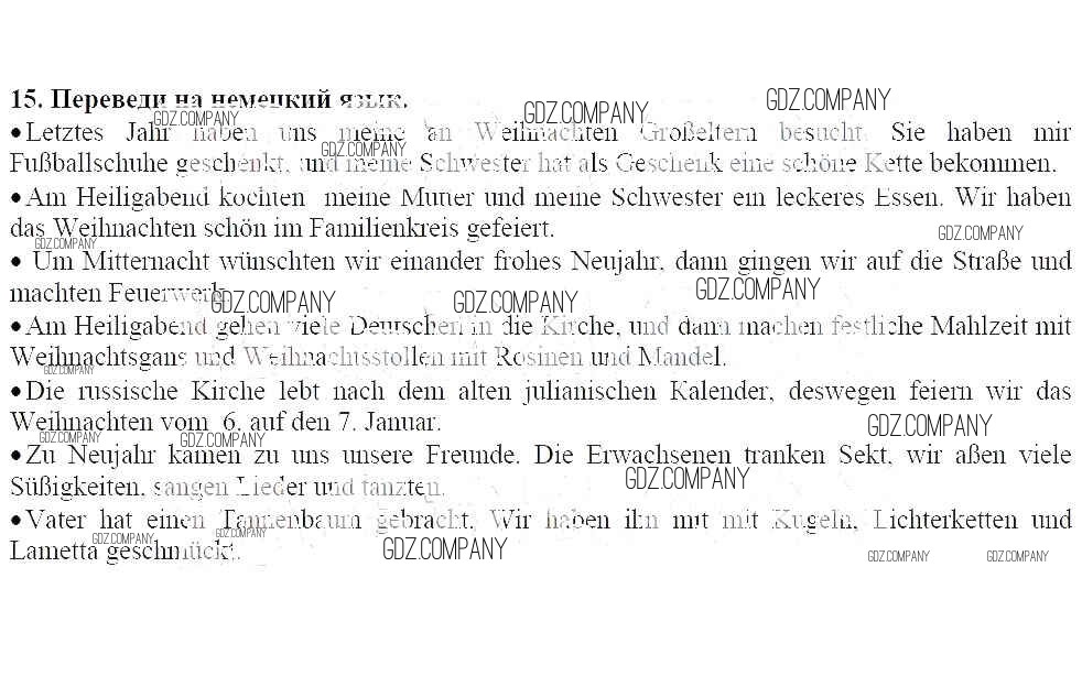 Здесь готовые ответы по Немецкому языку за 7 (седьмой) класс от Радченко, Глушак Рабочая тетрадь Wunderkinder (издательство: Просвещение от 2012 г.) № 15