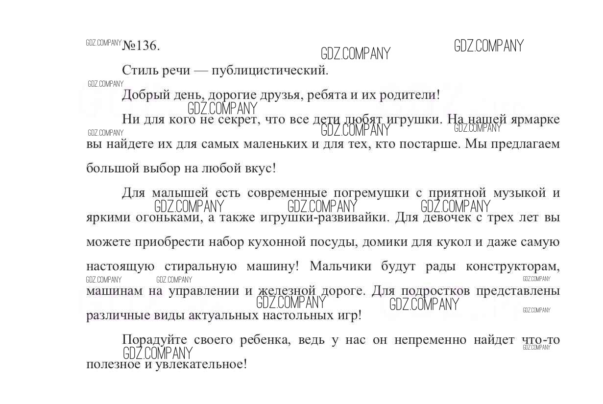 Здесь готовые ответы по Русскому языку за 7 (седьмой) класс от Баранов, Ладыженская, Тростенцова Учебник УМК (издательство: Просвещение от 2015 г.) № 136