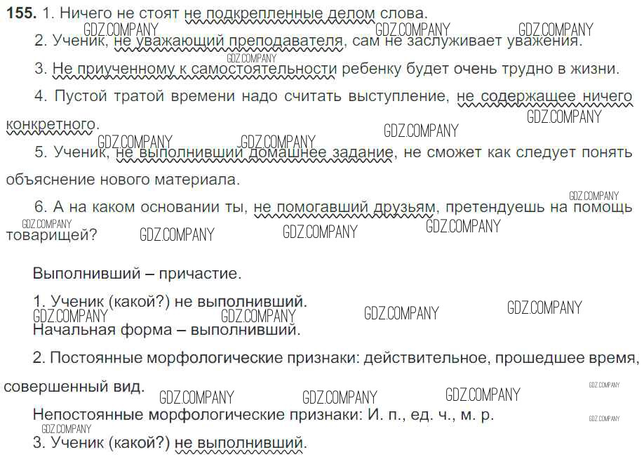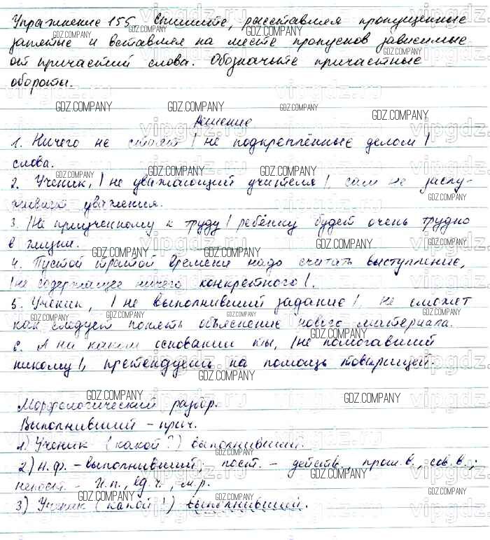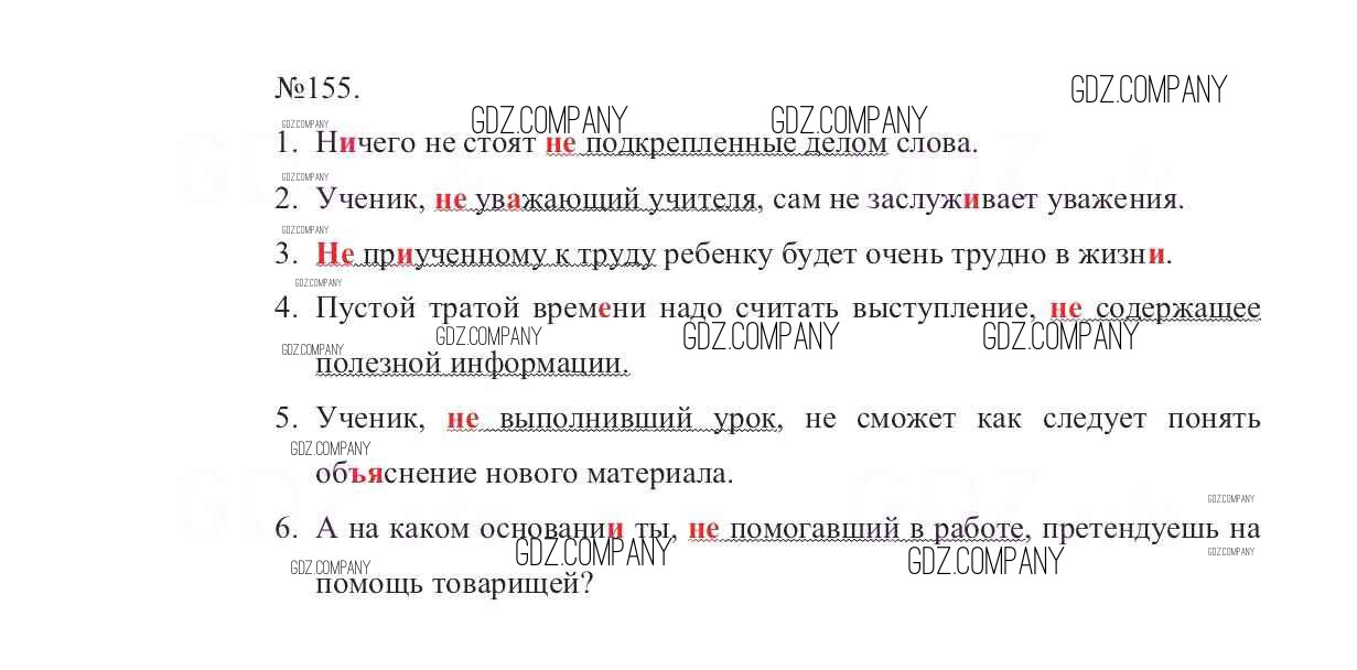 Здесь готовые ответы по Русскому языку за 7 (седьмой) класс от Баранов, Ладыженская, Тростенцова Учебник УМК (издательство: Просвещение от 2015 г.) № 155