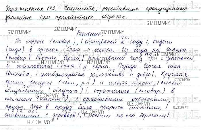 Здесь готовые ответы по Русскому языку за 7 (седьмой) класс от Баранов, Ладыженская, Тростенцова Учебник УМК (издательство: Просвещение от 2015 г.) № 172