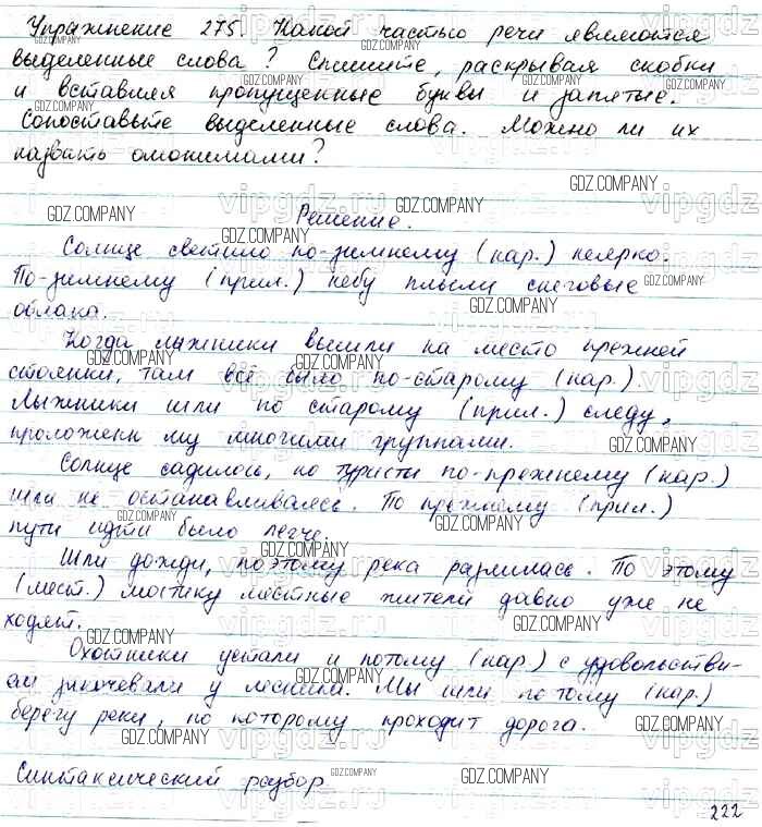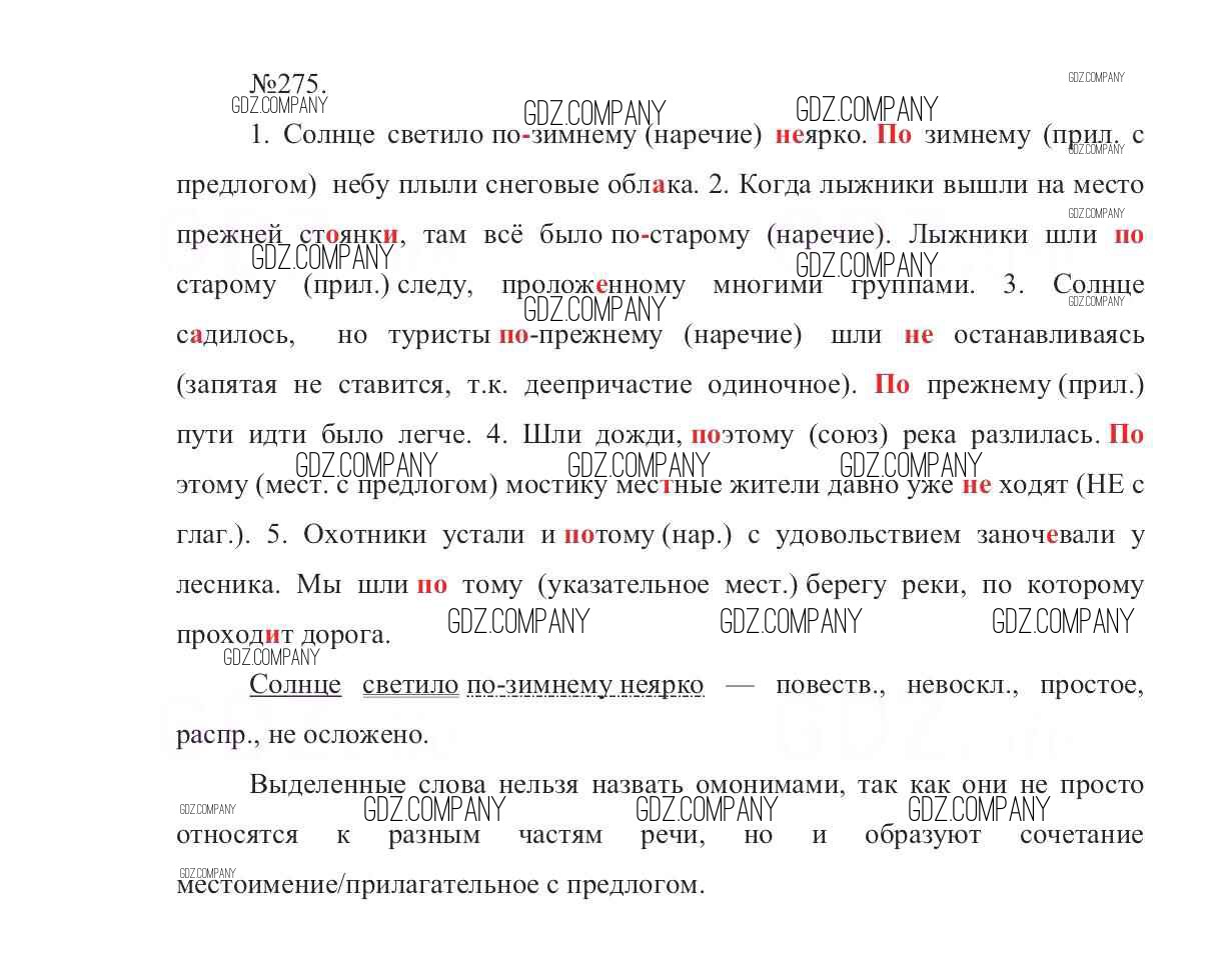 Здесь готовые ответы по Русскому языку за 7 (седьмой) класс от Баранов, Ладыженская, Тростенцова Учебник УМК (издательство: Просвещение от 2015 г.) № 275