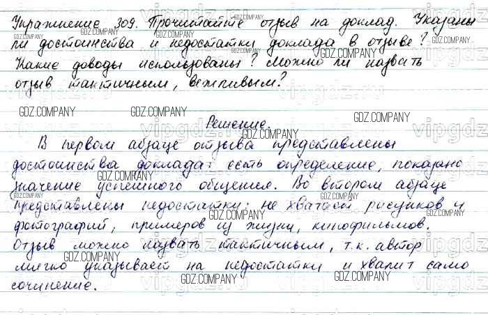 Здесь готовые ответы по Русскому языку за 7 (седьмой) класс от Баранов, Ладыженская, Тростенцова Учебник УМК (издательство: Просвещение от 2015 г.) № 309