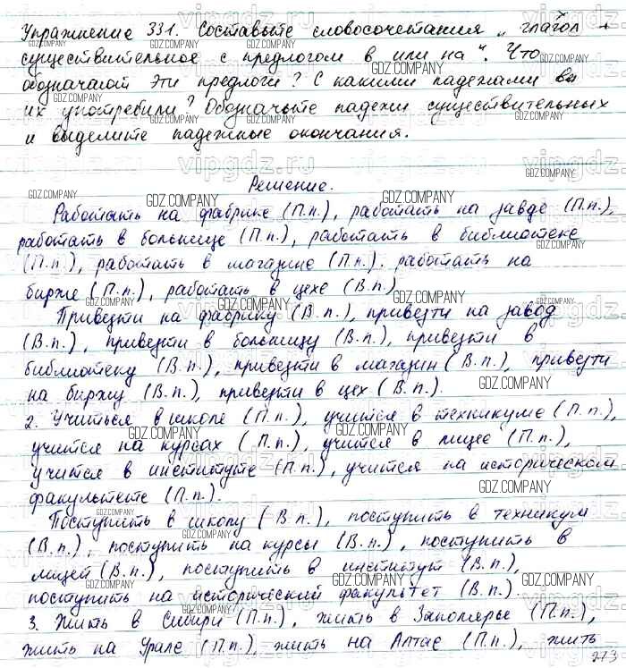 Здесь готовые ответы по Русскому языку за 7 (седьмой) класс от Баранов, Ладыженская, Тростенцова Учебник УМК (издательство: Просвещение от 2015 г.) № 331