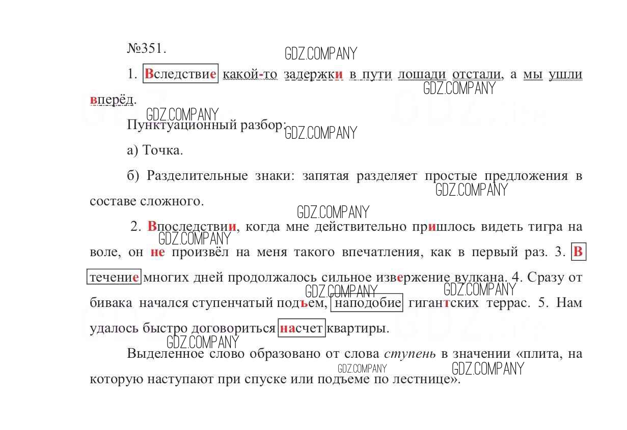 Здесь готовые ответы по Русскому языку за 7 (седьмой) класс от Баранов, Ладыженская, Тростенцова Учебник УМК (издательство: Просвещение от 2015 г.) № 351
