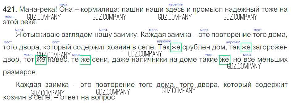 Здесь готовые ответы по Русскому языку за 7 (седьмой) класс от Баранов, Ладыженская, Тростенцова Учебник УМК (издательство: Просвещение от 2015 г.) № 421