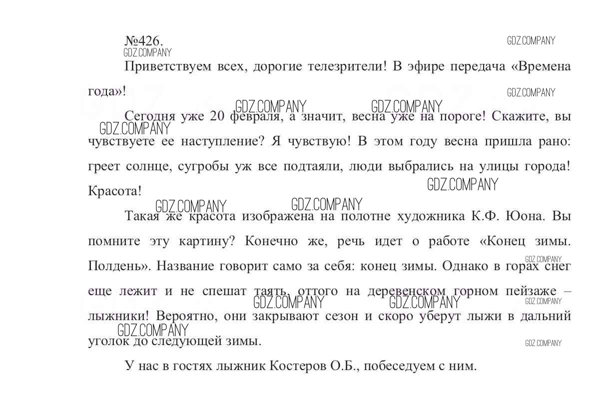 Здесь готовые ответы по Русскому языку за 7 (седьмой) класс от Баранов, Ладыженская, Тростенцова Учебник УМК (издательство: Просвещение от 2015 г.) № 426