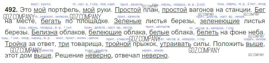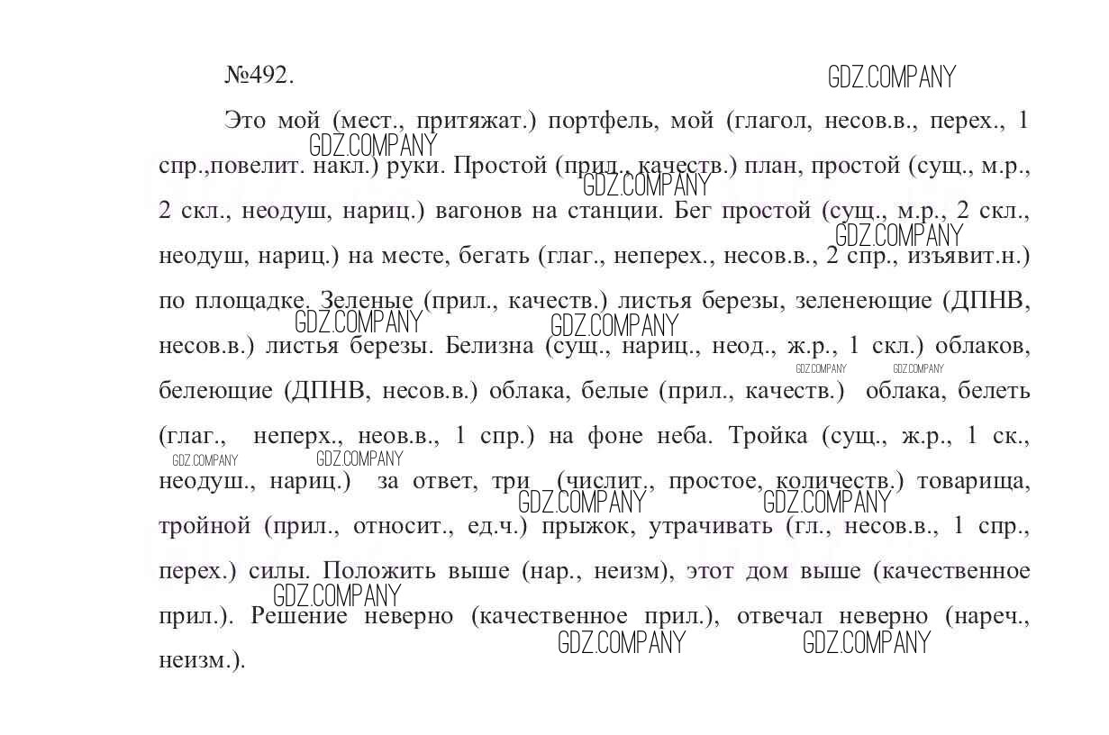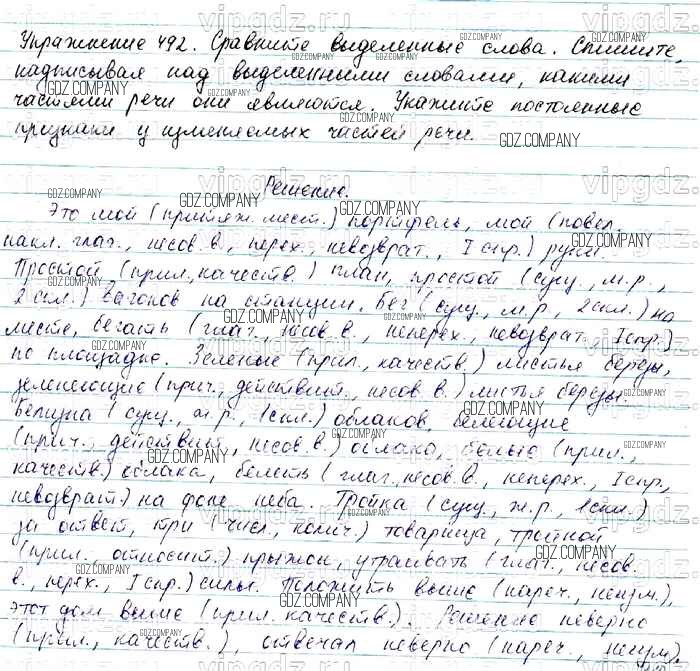 Здесь готовые ответы по Русскому языку за 7 (седьмой) класс от Баранов, Ладыженская, Тростенцова Учебник УМК (издательство: Просвещение от 2015 г.) № 492