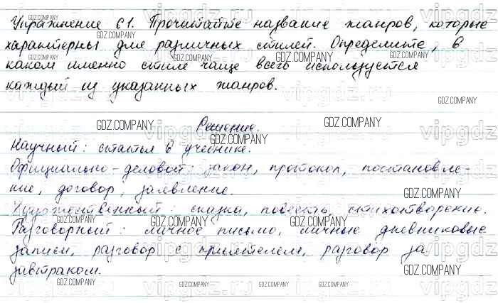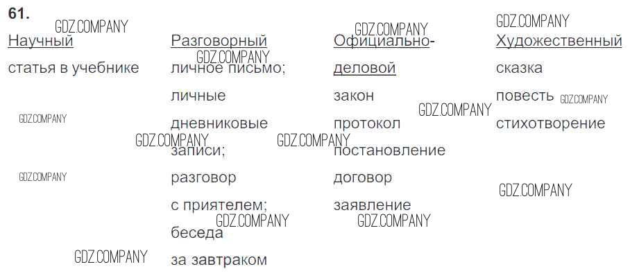 Здесь готовые ответы по Русскому языку за 7 (седьмой) класс от Баранов, Ладыженская, Тростенцова Учебник УМК (издательство: Просвещение от 2015 г.) № 61